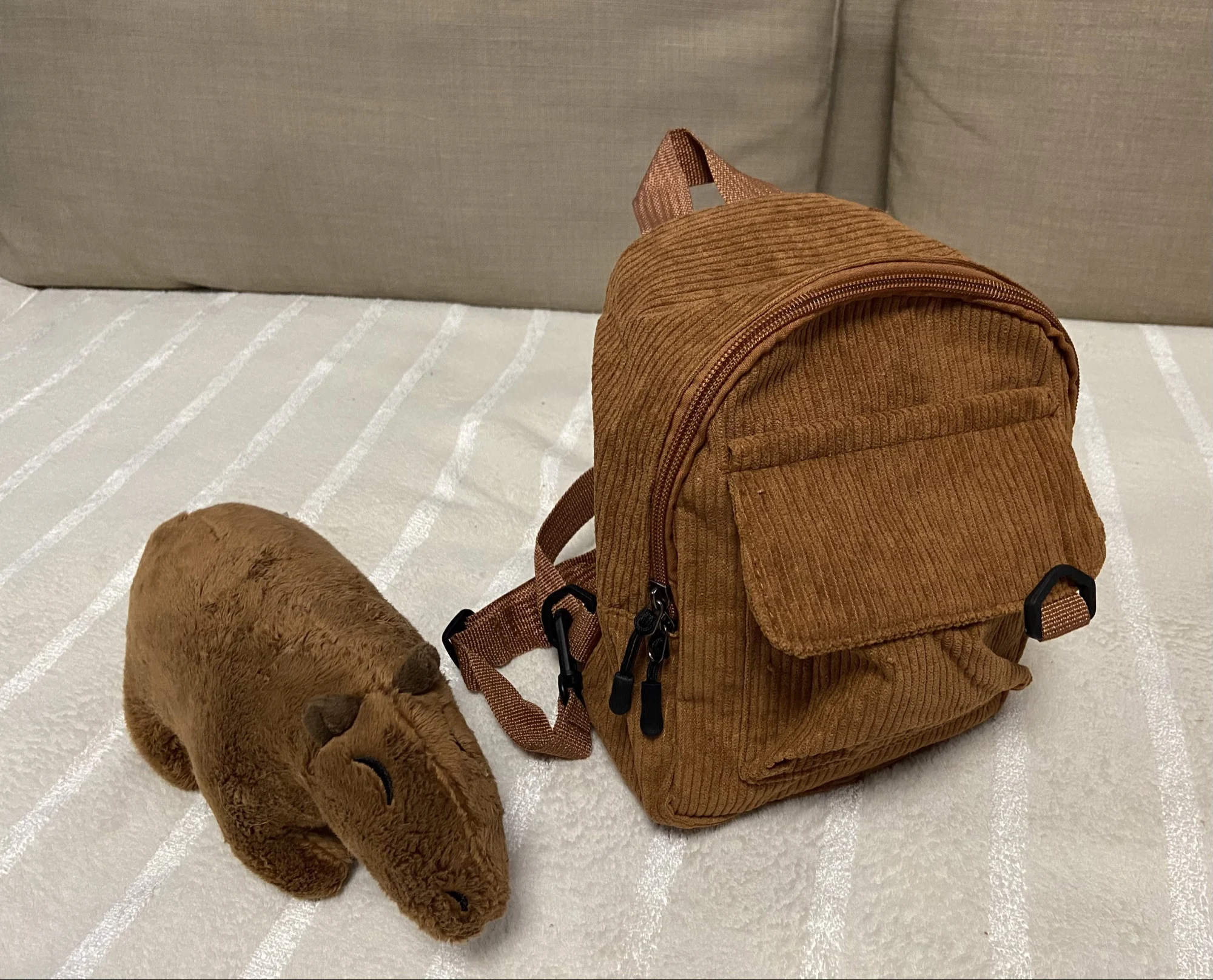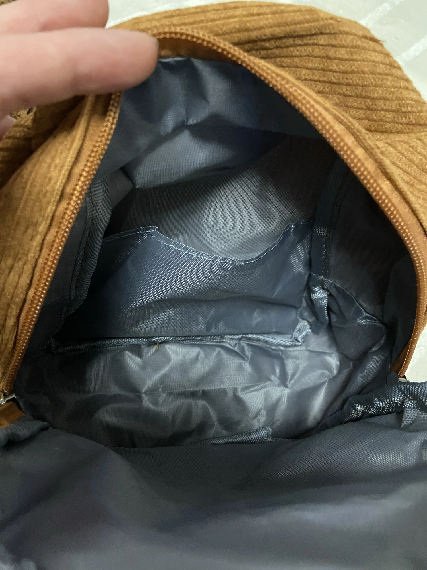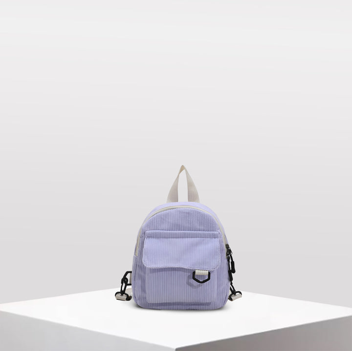 A compact yet stylish backpack crafted from soft corduroy. Slightly larger than hand size, it’s perfect for carrying essentials like a wallet, phone, keys, and a small tablet.